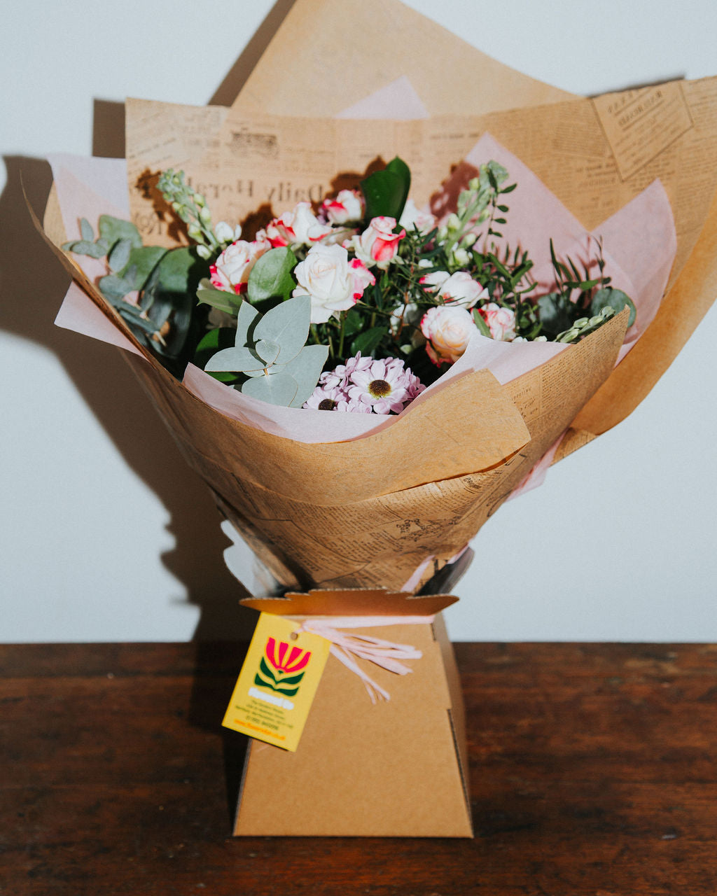 A delicate pastel bouquet featuring fragrant stocks, soft seasonal blooms, and lush greenery.